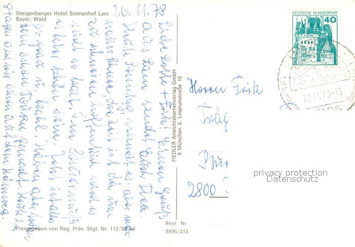 73678895 alte Postkarte Lam Oberpfalz Steigenberger Hotel Sonnenhof Fliegeraufnahme postalisch gelaufen Erhaltung siehe scans [FriedD77] KatCode: 11110009372138