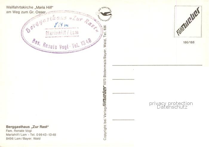 73174139 Lam Oberpfalz Wallfahrtskirche Maria Hilf am Weg zum grossen Osser postalisch nicht gelaufen Erhaltung siehe scans [FriedD77] KatCode: 11110009372138
