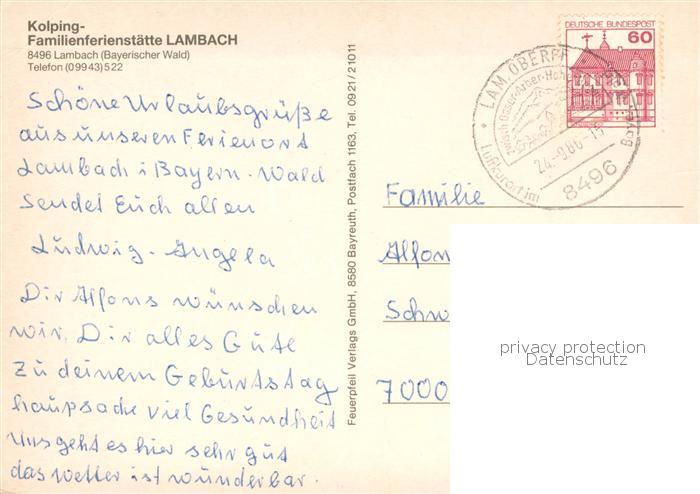 73776759 alte Postkarte Lambach Lam Kolping Familienferienstaette Lambach postalisch gelaufen Erhaltung siehe scans [WerneD78] KatCode: 11110009372138