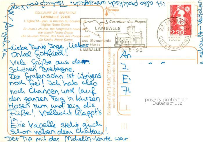 13793130 Lamballe 22 Cotes-d Armor Eglise Saint Jean Maison du bourreau Eglise Notre Dame Pont postalisch gelaufen Erhaltung siehe scans [FriedD77] carte postale Frie Katcode 11170022422093