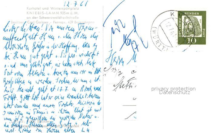 73012129 alte Postkarte Lamm Kniebis Kurhotel postalisch gelaufen Erhaltung siehe scans [KathaD81] KatCode: 11110008237028