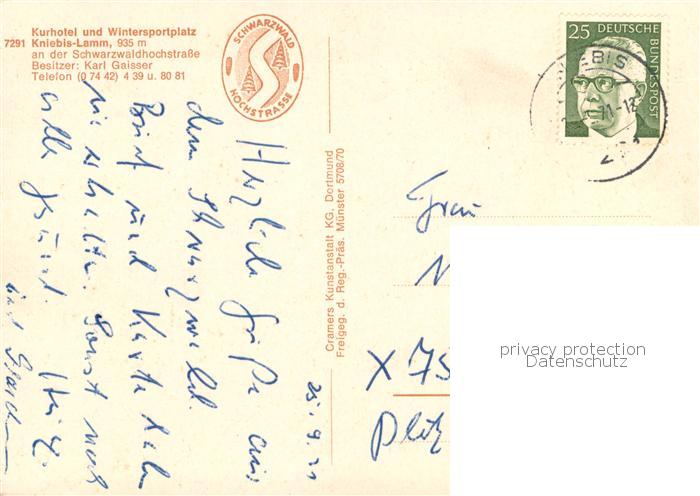 73761108 alte Postkarte Lamm Kniebis Kurhotel Fliegeraufnahme postalisch gelaufen Erhaltung siehe scans [WerneD78] KatCode: 11110008237028