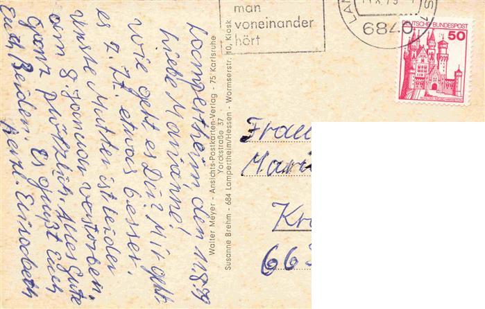 74013874 alte Postkarte Lampertheim Bergstrasse Amtsgericht und Friedensbrunnen Goethe Schule Kath Kirche Ehrenmal Kaiserstrasse postalisch gelaufen Erhaltung siehe scans [WerneD78] KatCode: 11110006431013