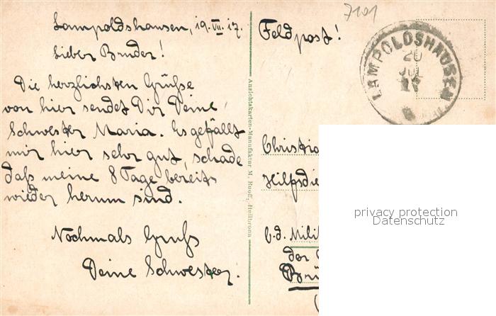 33156188 alte Postkarte Lampoldshausen Wirtschaft Wilhelm Beck Postagentur postalisch gelaufen Feldpost Erhaltung siehe scans [PaolaD17] KatCode: 11110008125111