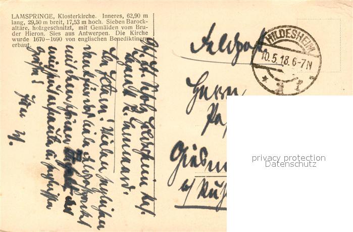 73359065 alte Postkarte Lamspringe Klosterkirche Innenansicht Feldpost postalisch gelaufen Erhaltung siehe scans [FriedD77] KatCode: 11110003254023
