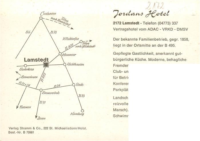 73896509 Lamstedt Jordans Hotel Restaurant postalisch nicht gelaufen Werbekarte (keine Postkarte) Erhaltung siehe scans [FriedD77] KatCode: 11110003352029