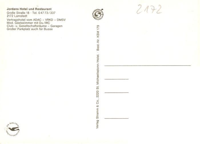 73885034 Lamstedt Jordans Hotel und Restaurant Gastraeume Zimmer postalisch nicht gelaufen Erhaltung siehe scans [FriedD77] KatCode: 11110003352029