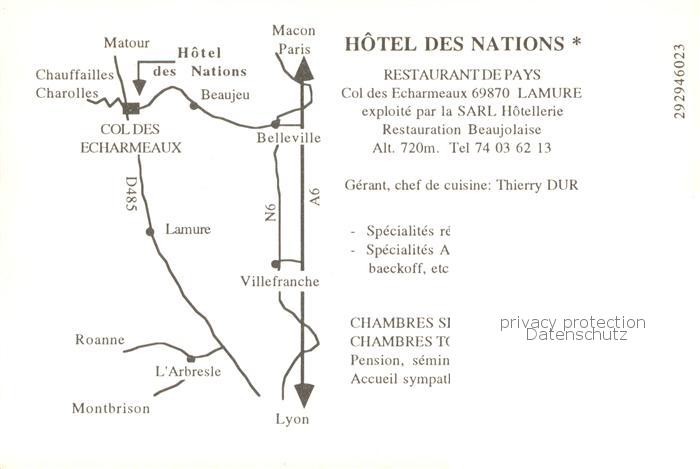 13786710 Lamure-sur-Azergues 69 Rhone Hotel des Nation Vue aerienne postalisch nicht gelaufen Werbekarte (keine Postkarte) Erhaltung siehe scans [WerneD78] Werbekarte (keine Postkarte) Wern Katcode 11170069269107