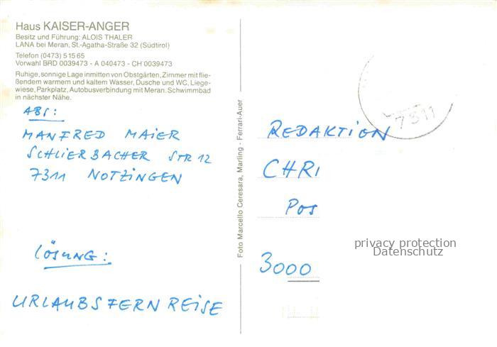 74104207 old postcard Lana di Sotto Niederlana Lana Meran IT Haus Kaiser Anger postalisch gelaufen Erhaltung siehe scans [WerneD78] KatCode: 11240
