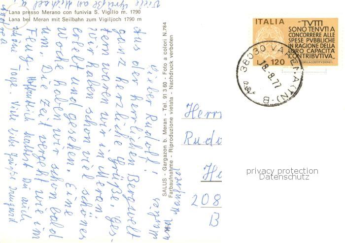 old postcard Lana Meran Panorama Seilbahn zum Vigiljoch postalisch gelaufen Erhaltung siehe scans [FriedD77]