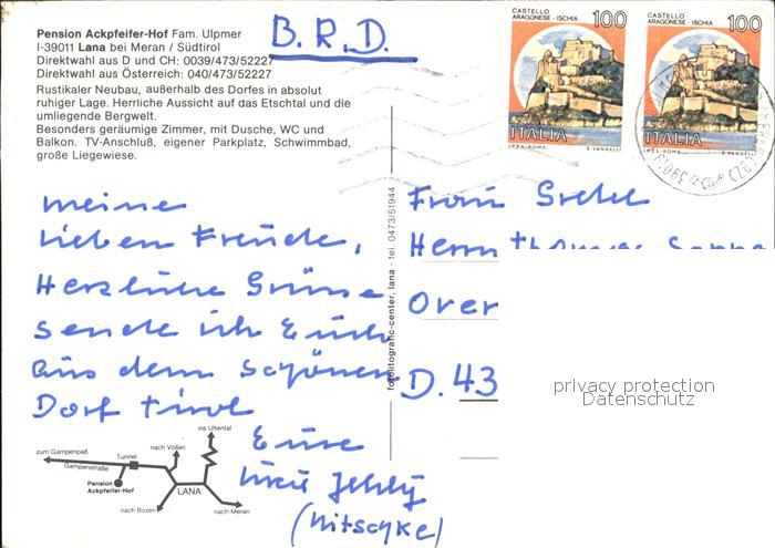 old postcard Lana Meran Pension Ackpfeifer -Hof postalisch gelaufen Erhaltung siehe scans