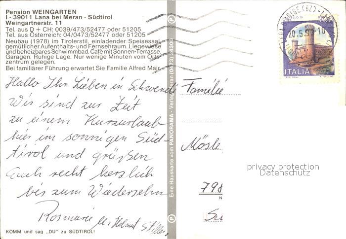 old postcard Lana Meran Pension Weingarten postalisch gelaufen Erhaltung siehe scans