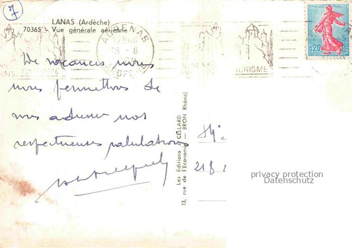 34146231 carte postale Lanas Largentiere 07 Ardeche Vue générale aérienne postalisch gelaufen Fliegeraufnahme Erhaltung siehe scans [FriedD77] KatCode: 11170007107131