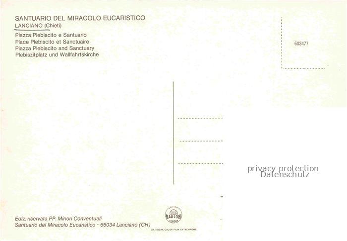 74079523 Lanciano Chieti Santuario del Miracolo Eucaristico Piazza Plebiscito Wallfahrtsort des eucharistichen Wunders Plebiszitplatz postalisch nicht gelaufen Erhaltung siehe scans [FriedD77] KatCode: 11240