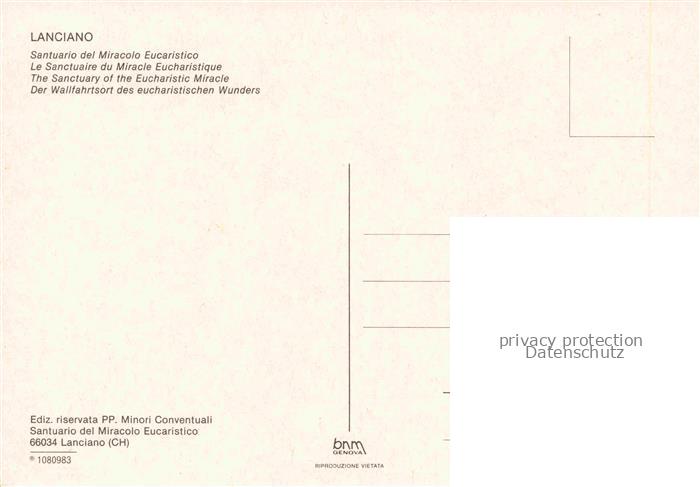 74079521 Lanciano Chieti Santuario del Miracolo Eucaristico Wallfahrtsort des eucharistichen Wunders postalisch nicht gelaufen Erhaltung siehe scans [FriedD77] KatCode: 11240