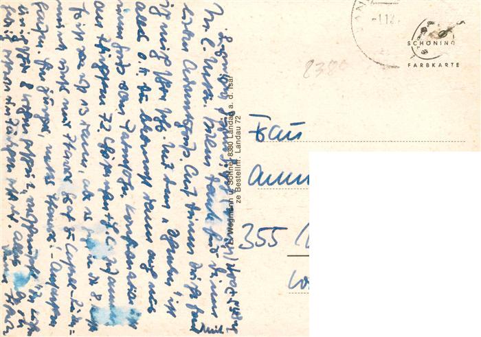 73887199 alte Postkarte Landau Isar Kirche Panorama Wachsender Felsen Am Theresienplatz Schwimmbad Bruecke postalisch gelaufen Erhaltung siehe scans [WerneD78] KatCode: 11110009279122