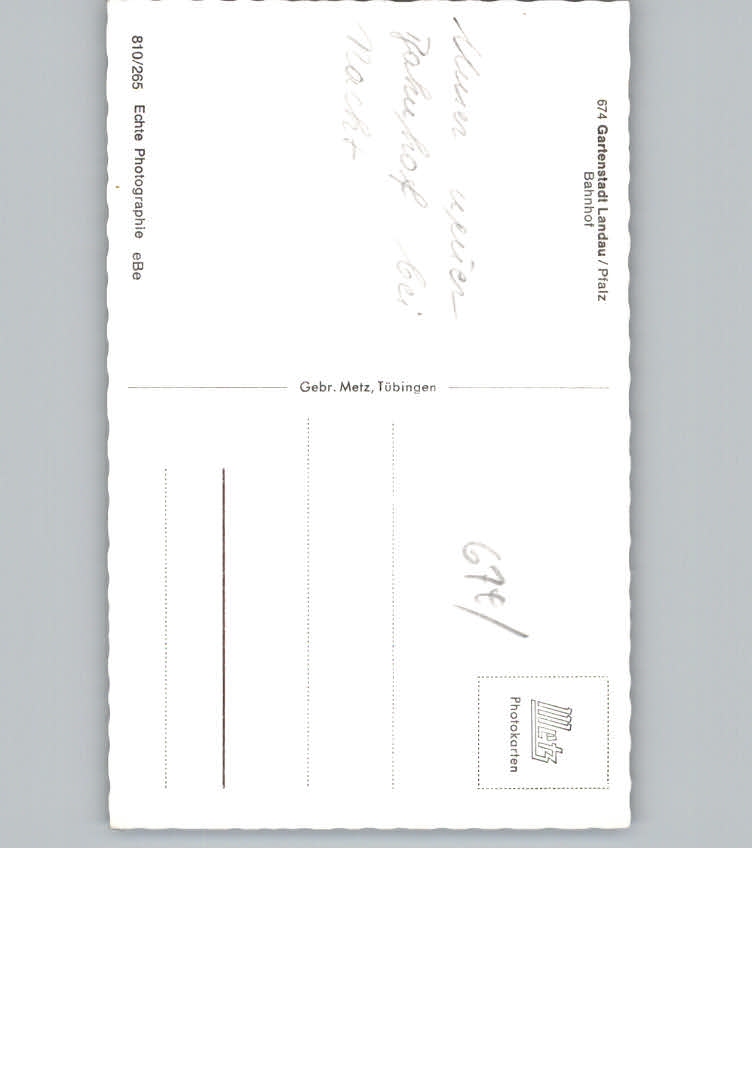 31147309 Landau Pfalz Bahnhof postalisch nicht gelaufen KatCode: 11110007313000
