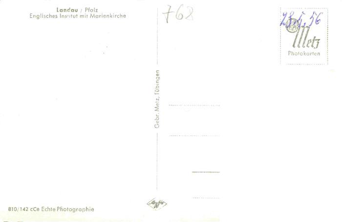 73972308 Landau Pfalz Englisches Institut mit Marienkirche postalisch nicht gelaufen Erhaltung siehe scans [FriedD77] KatCode: 11110007313000