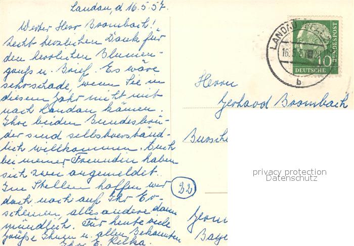 73081734 alte Postkarte Landau Pfalz Festhalle postalisch gelaufen Erhaltung siehe scans [LiesaD40] KatCode: 11110007313000