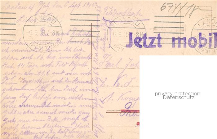 43350627 alte Postkarte Landau Pfalz Festhalle postalisch gelaufen Feldpost – Stempel Erhaltung siehe scans [FriedD77] KatCode: 11110007313000