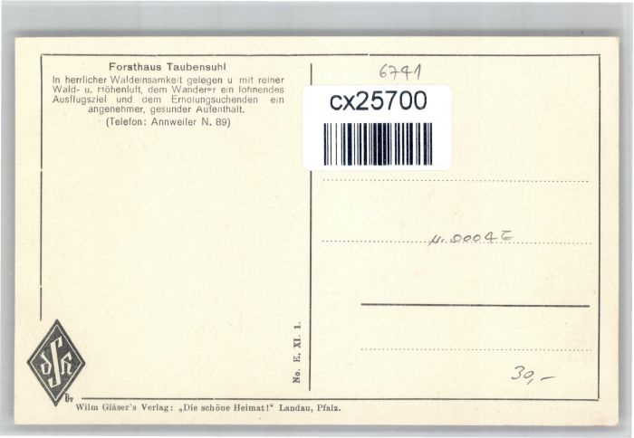 30826697 Landau Pfalz Forsthaus Taubensuhl postalisch nicht gelaufen KatCode: 11110007313000