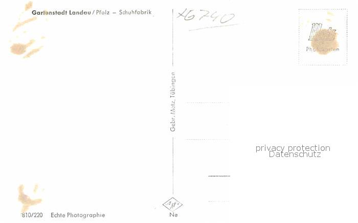 42660940 Landau Pfalz Gartenstadt Schuhfabrik postalisch nicht gelaufen Erhaltung siehe scans [KathaD79] KatCode: 11110007313000