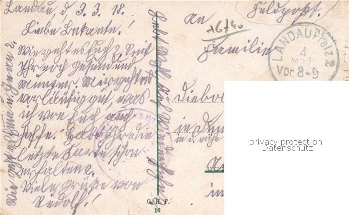 42963182 alte Postkarte Landau Pfalz Glacisstrasse postalisch gelaufen Feldpost Erhaltung siehe scans [AndreD76] KatCode: 11110007313000