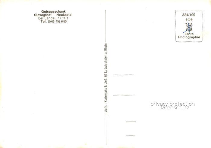 73616816 Landau Pfalz Neukastel Gutsausschank Slevogthoft postalisch nicht gelaufen Erhaltung siehe scans [KathaD81] KatCode: 11110007313000