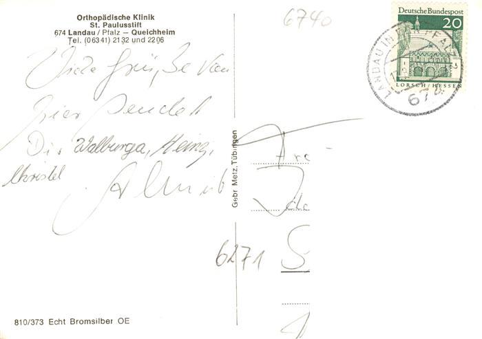 73890044 alte Postkarte Landau Pfalz Orthopaedische Klinik St Paulusstift Teilansichten postalisch gelaufen Erhaltung siehe scans [WerneD78] KatCode: 11110007313000