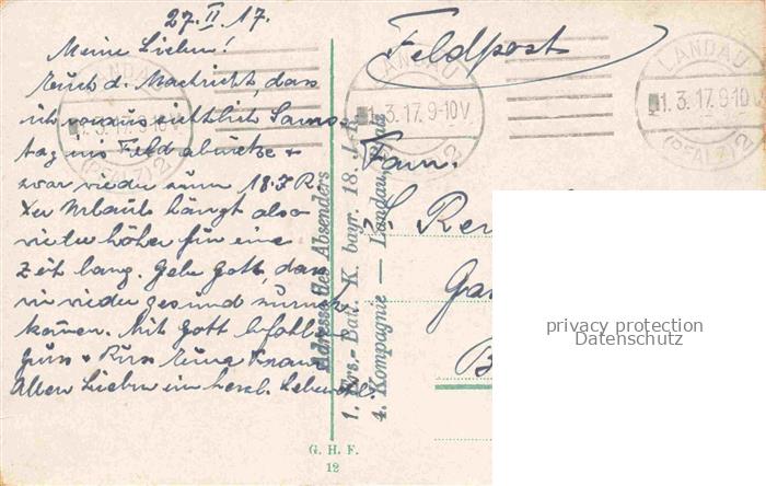 74153700 alte Postkarte LANDAU PFALZ Partie im Westpark Feldpost postalisch gelaufen Erhaltung siehe scans [WerneD78] KatCode: 11110007313000