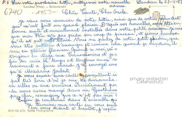 73748931 Landau Pfalz Reiterstrasse postalisch nicht gelaufen Erhaltung siehe scans [WerneD78] KatCode: 11110007313000