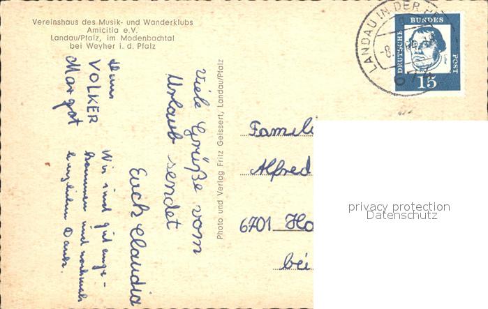 72096924 alte Postkarte Landau Pfalz Sieben Quellenhaus Gaststube postalisch gelaufen Erhaltung siehe scans KatCode: 11110007313000