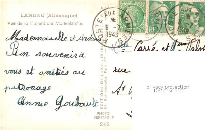 73560362 alte Postkarte Landau Pfalz Stadtpfarrkirche Marienkirche postalisch gelaufen Erhaltung siehe scans [KathaD81] KatCode: 11110007313000