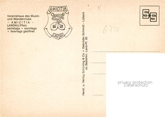 73762149 Landau Pfalz Vereinshaus Sieben Quellen im Modenbachtal Club Amicitia postalisch nicht gelaufen Erhaltung siehe scans [FriedD77] KatCode: 11110007313000