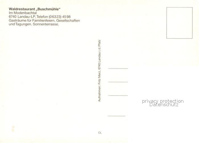 73680813 Landau Pfalz Waldrestaurant Buschmuehle postalisch nicht gelaufen Erhaltung siehe scans [LiesaD40] KatCode: 11110007313000