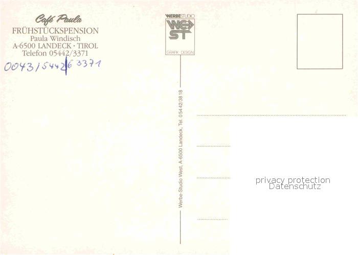 12873061 Landeck Tirol Fruehstueckspension Cafe Paula postalisch nicht gelaufen Erhaltung siehe scans [PaolaD17] KatCode: 11390334070614