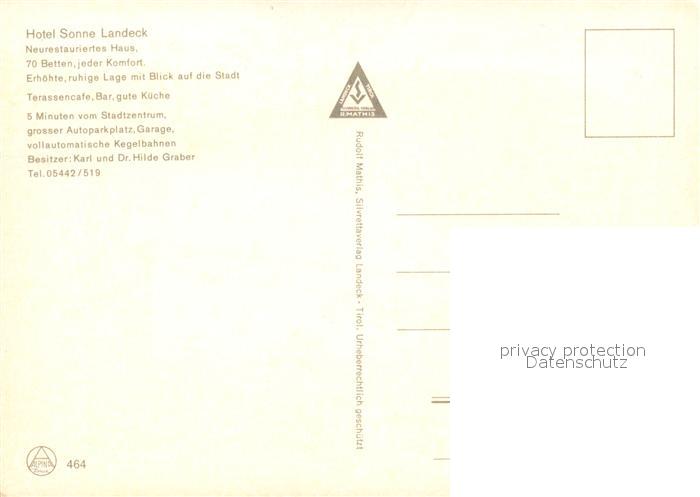 73100437 Landeck Tirol Hotel Sonne postalisch nicht gelaufen Erhaltung siehe scans [NatalD47] KatCode: 11390334070614