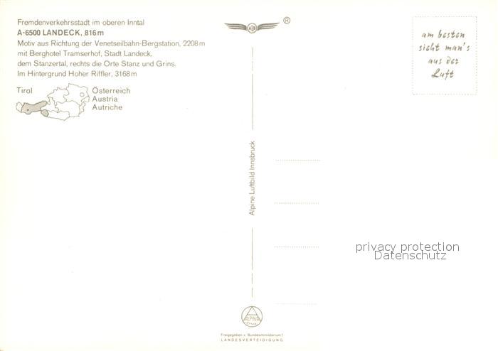 73312342 Landeck Tirol Motiv aus Richtung Venetseilbahn Bergstation Berghotel Tramserhof Stanzertal Hoher Riffler Verwall Fliegeraufnahme postalisch nicht gelaufen Erhaltung siehe scans [FriedD77] KatCode: 11390334070614
