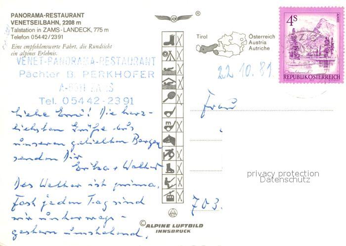73027915 alte Postkarte Landeck Tirol Panorama-Restaurant Venetseilbahn postalisch gelaufen Erhaltung siehe scans [PaolaD17] KatCode: 11390334070614