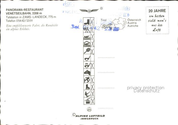 71860328 Landeck Tirol Zams Venet-Seilbahn Panorama-Restaurant Fliegeraufnahme postalisch nicht gelaufen Erhaltung siehe scans KatCode: 11390334070614