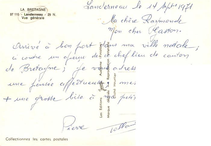 13942709 Landerneau 29 Finistere Vue generale aerienne postalisch nicht gelaufen Erhaltung siehe scans [FriedD77] Frie Katcode 11170029129103
