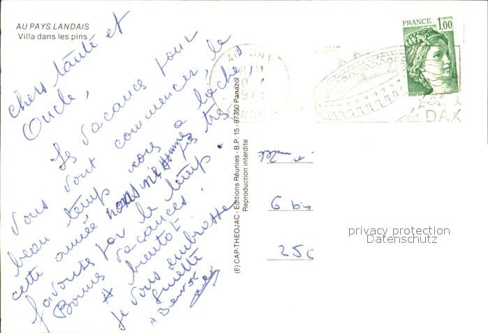 12325679 carte postale Landes Villa dans les pins postalisch gelaufen Erhaltung siehe scans KatCode: 11170017517202