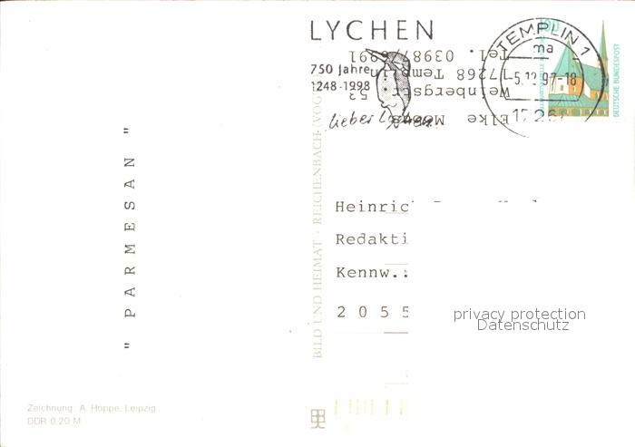 alte Postkarte Landkarte auf Ak Uckermark Templin-Lychen Zeichnung A. Hoppe postalisch gelaufen