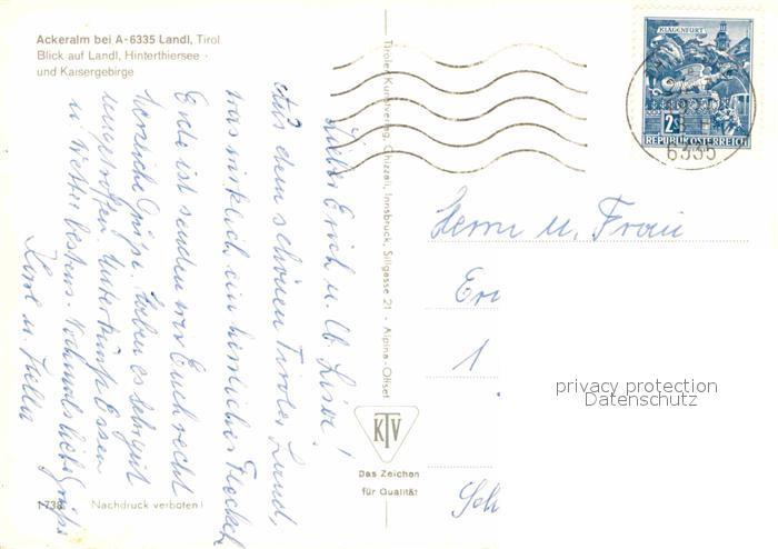72710823 alte Postkarte Landl Thiersee Ackeralm Blick auf Landl Hinterthiersee und Kaisergebirge postalisch gelaufen Erhaltung siehe scans [FriedD77] KatCode: 11390335070527