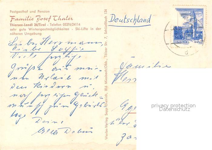 73642997 alte Postkarte Landl Thiersee Gasthof Pension Thaler Winterimpressionen postalisch gelaufen Erhaltung siehe scans [FriedD77] KatCode: 11390335070527