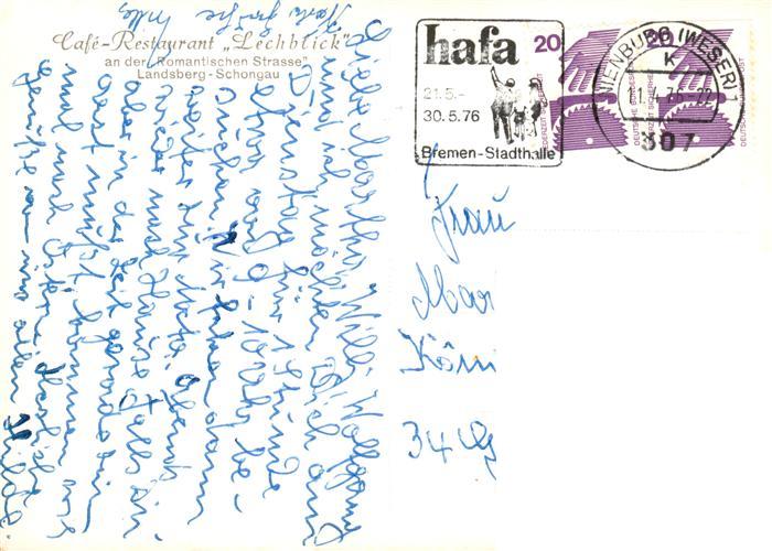 73902156 alte Postkarte Landsberg Lech Bayern Cafe Restaurant Lechblick Gaststube Terrasse Panorama postalisch gelaufen Erhaltung siehe scans [WerneD78] KatCode: 11110009181130