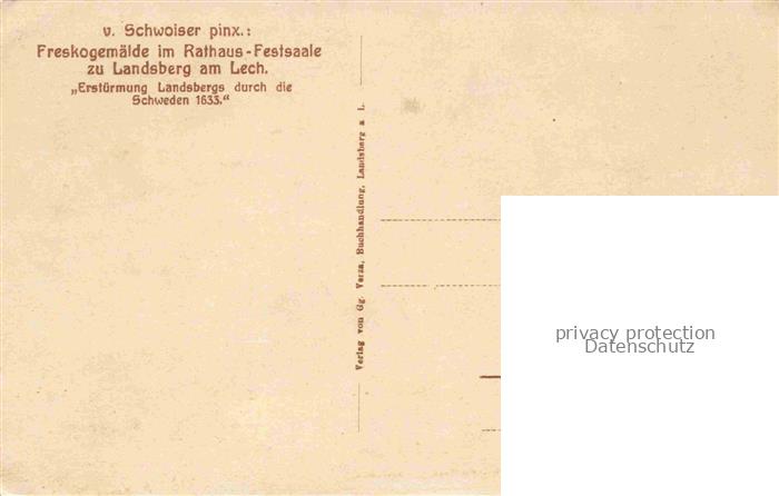 74017120 Landsberg Lech Bayern Freskogemaelde im Rathaus-Festsaal Erstuermung Landsbergs durch die Schweden 1633 Gemaelde von Schwoiser Kuenstlerkarte postalisch nicht gelaufen Erhaltung siehe scans [FriedD77] KatCode: 11110009181130