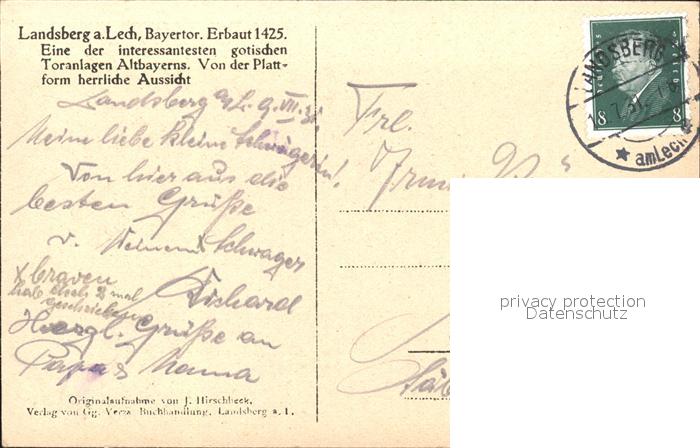 71848202 alte Postkarte Landsberg Lech Bayertor postalisch gelaufen Erhaltung siehe scans KatCode: 11110009181130