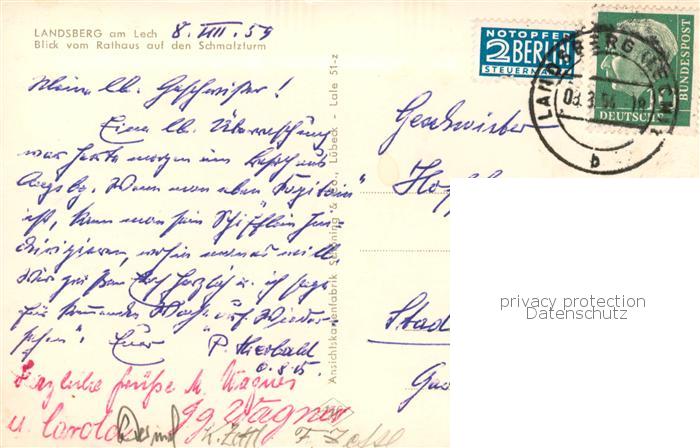 73792943 alte Postkarte Landsberg Lech Blick v. Rathaus a.d. Schmalzturm postalisch gelaufen Erhaltung siehe scans [LiesaD40] KatCode: 11110009181130