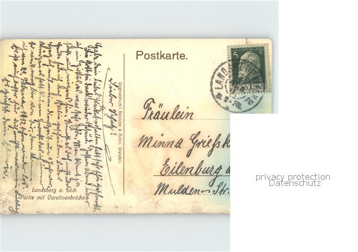 72217081 alte Postkarte Landsberg Lech Carolinenbruecke postalisch gelaufen Erhaltung siehe scans KatCode: 11110009181130
